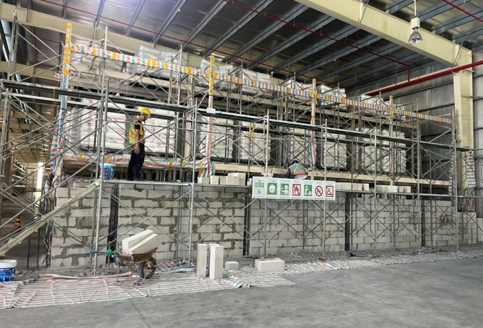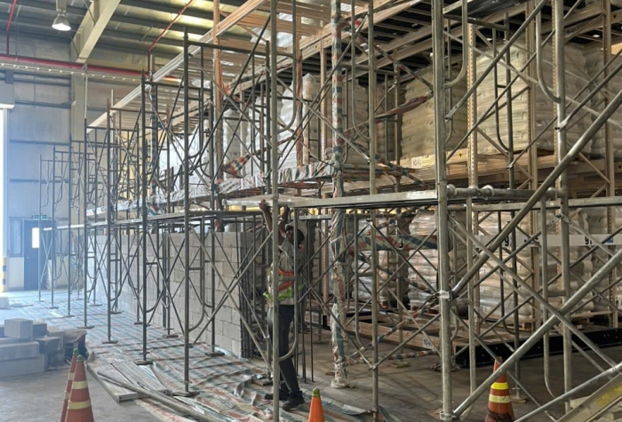 Mô tả công việc: Xây mới tường chống cháy, thi công cải tạo hệ thống cữa và ME của nhà kho